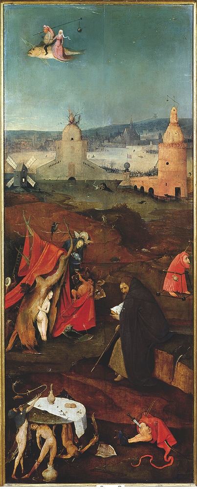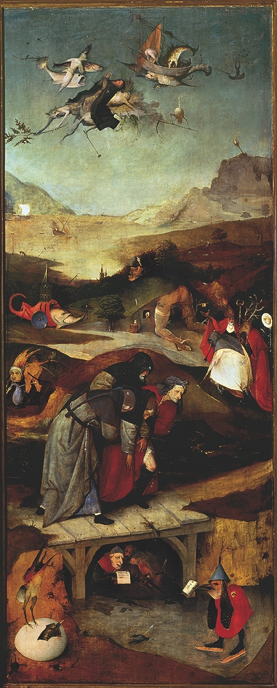 Lissabon, Museu Nacional de Arte Antiga Verzoeking van de heilige Antonius Middenpaneel Buitenluiken: Passie van Christus Middenpaneel: 131,5 x 119 cmZijluiken: 131,5 x 53 cm Deel facebook twitter